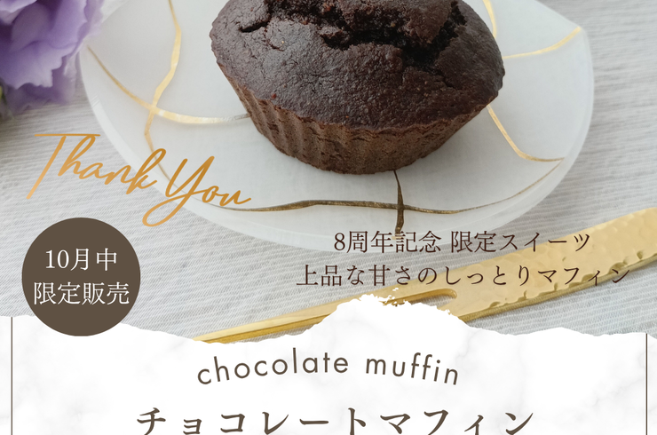 2025/09/30日頃より玄genをご愛顧いただきありがとうございます。 おかげさまで10月1日で8周年を迎えることができました。 心ばかりの感謝の気持ちを込めて、10月の一ヶ月限定の8周年記念スイーツを販売いたします! 上品な甘さでしっとりとした〈チョコレートマフィン〉です。 ぜひご賞味ください。 皆さまのご来店をお待ちしております。 玄gen 店主 -
